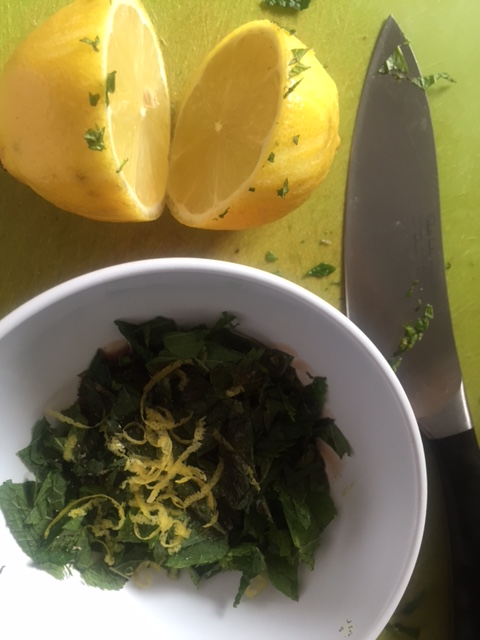Make up your dressing – finely slice your mint and add to a small bowl with the other ingredients and whisk to combine. Taste the dressing if its too sharp for you either add more pomegranate molasses or a pinch or so of caster sugar.