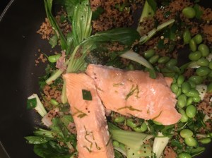 Lime salmon with quinoa and edamame hot salad