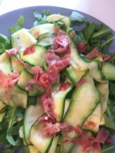 Prosciutto, Goats Cheese and Courgette Salad
